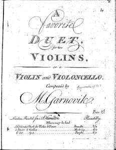 A favorite duet: for two violins or a violin and violoncello / composed by M. Garnovik