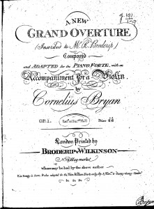 A New Grand Overture: composed and adapted for the pianoforte, with an accompaniment for a violin : (inscribed to M. R. Broderip) / by Cornelius Bryan
