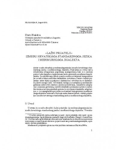 "Lažni prijatelji" između hrvatskoga standardnoga jezika i međimurskoga dijalekta / Đuro Blažeka